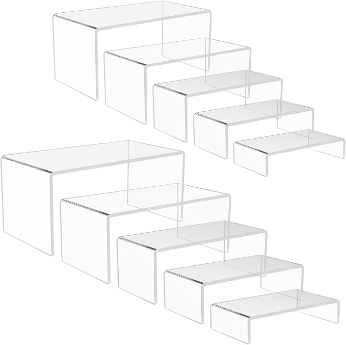 10 PCS acrylic display stand, Acrylic Display Risers, 5 Sizes Clear Product Stand, Jewelry Display Riser Shelf Showcase Fixtures For Collectibles Display, Toy Figure Display