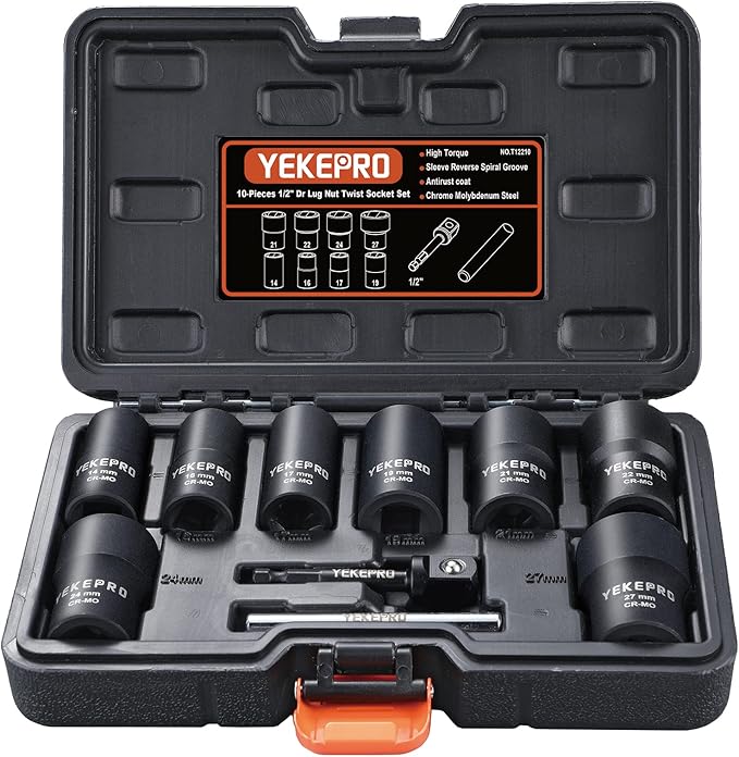 10Pcs Bolt Nut Extractor Set, 1/2″ Drive Impact Twist Lug Nut Removal Socket Tool, Stripped For Damaged, Frozen, Studs, Rusted, Rounded-Off Bolts, Nuts & Screws, Cr-Mo Steel, T12210