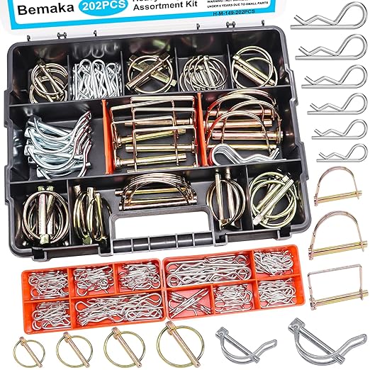 202Pcs Hitch Pins Clip Pins Assortment Kit, Heavy Duty Hitch Pins R Clip, Linch Pins, PTO Pins Trailer Truck Towing Tractor Accessories Three-Point Accessories for Lawn Garden Farm Equipment