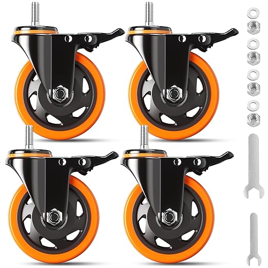 4 Inch Caster Wheels 2200Lbs, Threaded Stem Casters Set of 4 Heavy Duty, 1/2″-13 x 1 (Screw Diameter 1/2″, Stem Length 1″), Safety Dual Locking Industrial Castors, Wheels for Cart, Furniture