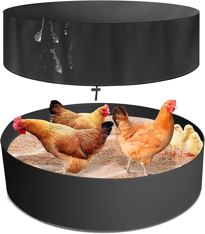 Adjustable Chicken Dust Bath Tub, Chicken Dust Bath Container 25” Bottomless Design PE Material Suitable for Chickens, Ducks, Turkeys, Quails, for Farms, Chicken Coops (Black-with waterproof cover)