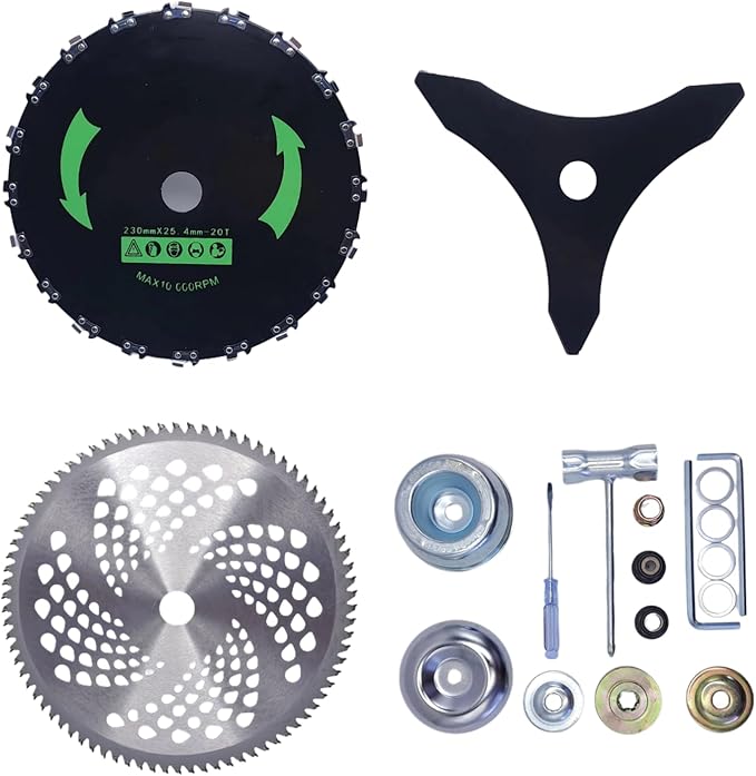 Brush Cutter Blade Kit for Weedeater – 9″ x 20T Chainsaw Tooth, 10″ x 80T Carbide Tip, 10″ x 3 Teeth Carbon Steel Blades – Fits for Stihl, Husqvarna、Ego、Oregon、Hitachi Trimmer