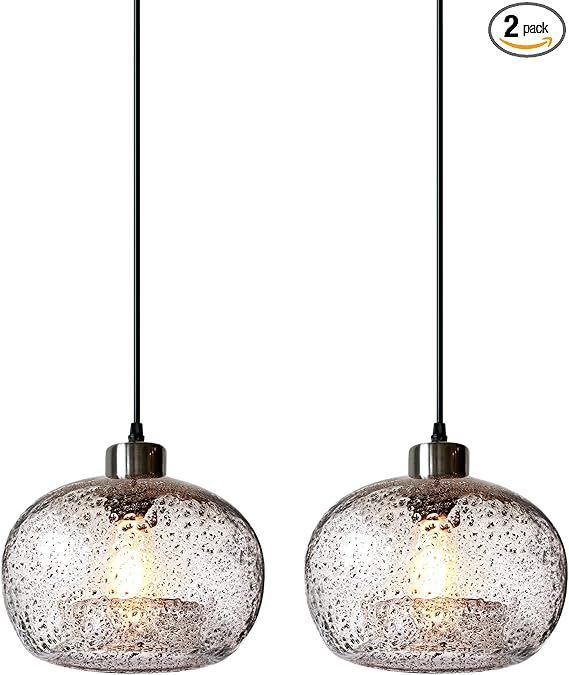 CASAMOTION Pendant Lights Kitchen Island,Clear Seeded Glass with Black Sand Powder,Modern Farmhouse Ceiling Hanging Lighting Fixtures,Dining Room Table Bedroom Oval Globe 8.7 Inch Diam 2 Pack