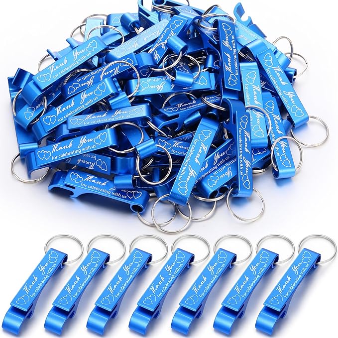 Dandat 100 Pcs Bottle Opener Keychain Bulk Thank You Wedding Favors for Guests Aluminum Wine Beer Opener Engraved Wedding Guest Gifts for Birthday Party Graduation Souvenirs(Blue)