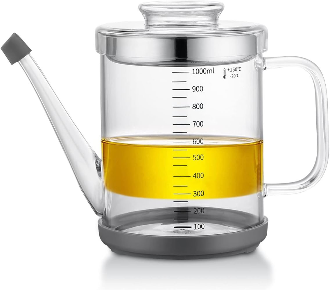 Fat Separator,Cooking Gravy Strainer, with Stainless Steel Oil Strainer,1000ML Transparent Heat Resistant Glassware and Cover,Silicone Bottom Cover and Stopper
