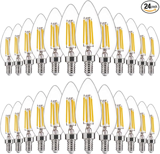 FLSNT 60W Equivalent LED Chandelier Light Bulbs, Dimmable LED B11 E12 Candelabra Base Bulbs, 3500K Natural White, 550LM, 24 Pack UL,CA65 Listed.