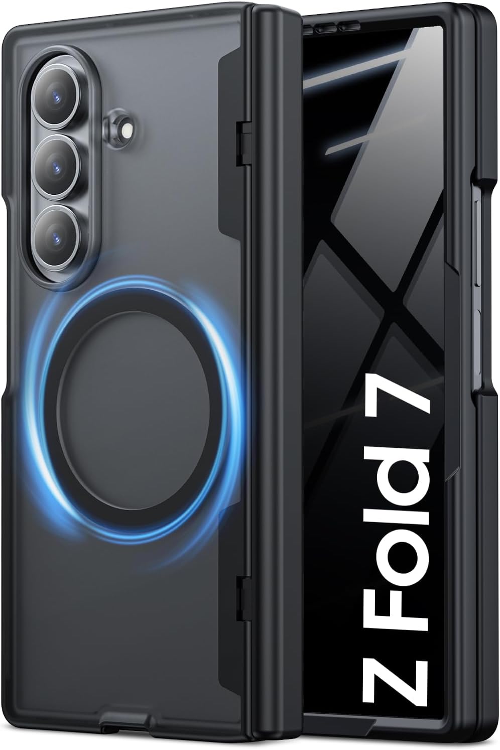 for Galaxy Z Fold 7 Case with Privacy Screen Protector, [Compatible with MagSafe] [Hinge Protection] Military Drop Protection, Shockproof Translucent Phone Case for Samung Z Fold 7 (Black)