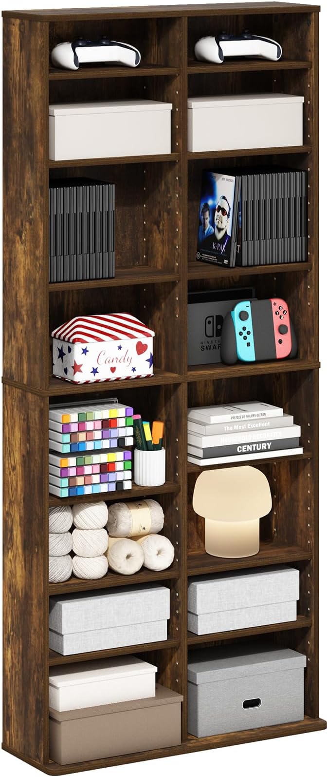 Furinno Jaya 16-Shelf Multimedia Media Storage Tower Rack with Adjustable Shelves, Amber Pine
