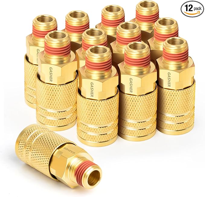 GASHER 12PCS 1/4-Inch Brass Male Industrial Coupler,1/4 Inch NPT Male Threads Size, Quick Connect Air Coupler