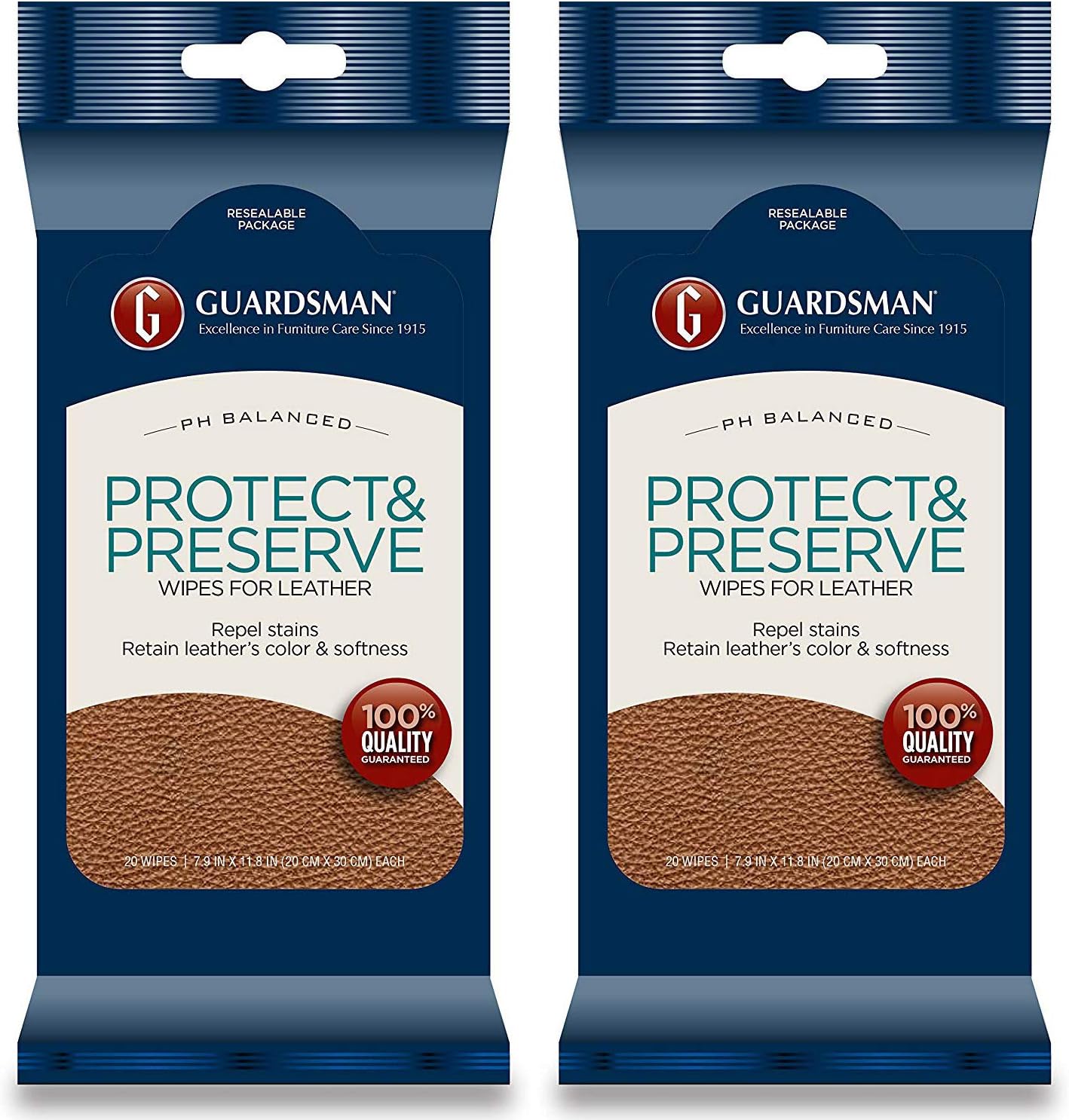 Guardsman Protect & Preserve Wipes for Leather 20 Wipes – Repels Stains, Retains Color and Softness, Great for Leather Furniture & Car Interiors – 2 Pack