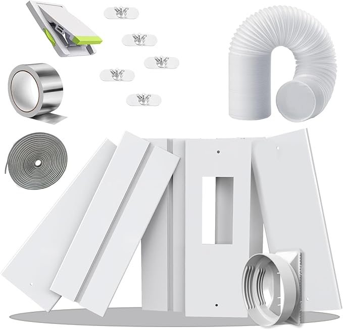 Gulrear 95″Sliding Door AC Vent Kit with Φ 5.1″Extendable Hose Security Lock & Weather Stripping Universal 5.0/5.9 Inch Coupler for Sliding Glass/Window Portable AC Energy Saving Airtight Seal System