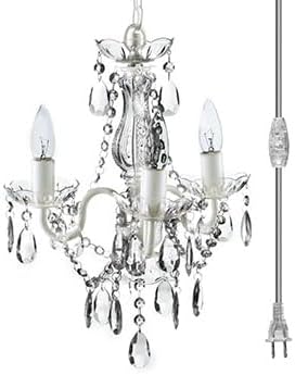 gypsy color The Original Brink House Plug-in 3 Light Crystal White Hanging Swag Chandelier H17”xW12”, White Metal Frame with Clear Glass Stem and Acrylic Crystals