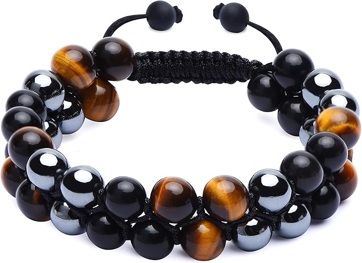 Healing Crystals Tigers Eye Black Obsidian Hematite 8mm Stone Beads Good Luck Triple Protection Bracelet for Men Women