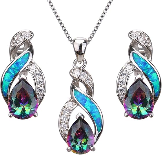 Hermosa Jewelry Sets Australian Created Opal Necklace Earrings Mother’s Day Gifts Jewelry for Mom