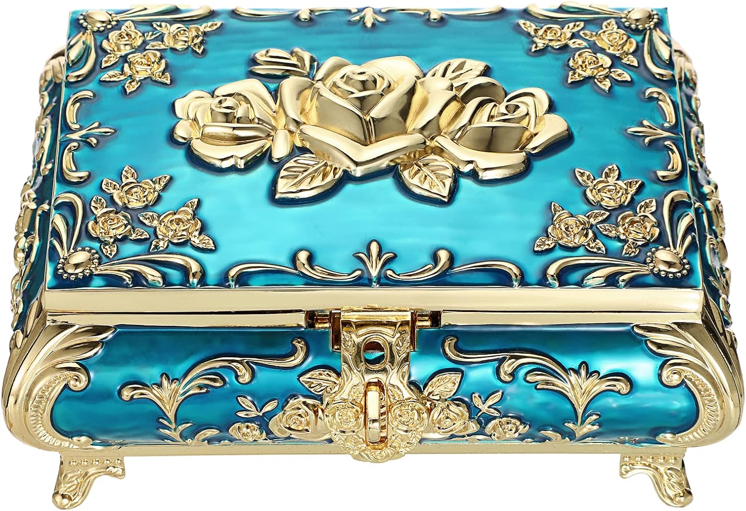 Hipiwe Metal Decorative Jewelry Box Vintage Treasure Chest Case Ornate Trinket Organizer Earrings Necklace Bracelet Storage Box Ring Holder Keepsake Box for Women