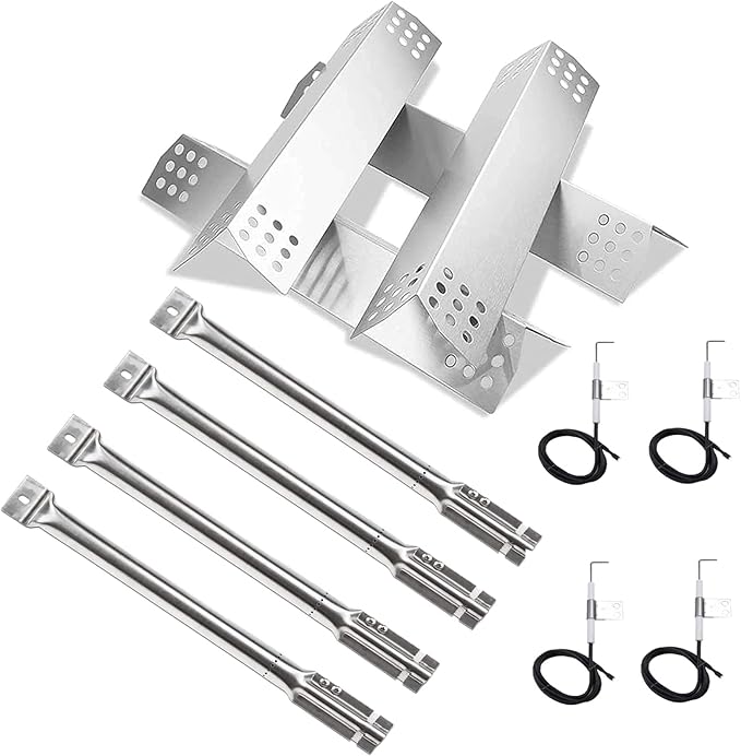 Hisencn Repair Kit for Master Forge 1010037, 1010048 Gas Grill Models, Stainless Steel Burners, Stainless Steel Heat Plates Replacement Parts, Grill Replacement Parts for Master Forge
