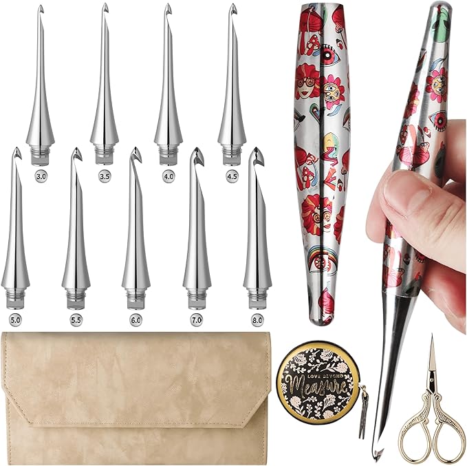 Interchangeable Crochet Hooks Crochet Hook Set – US Sizes E4 / G6 / 7 / H8 / I9 / J10 / K10.5 / L11 / M13 (3-8mm) of Ergonomic Crochet Hooks – Complete Metal Crochet Hook Knitting Tools