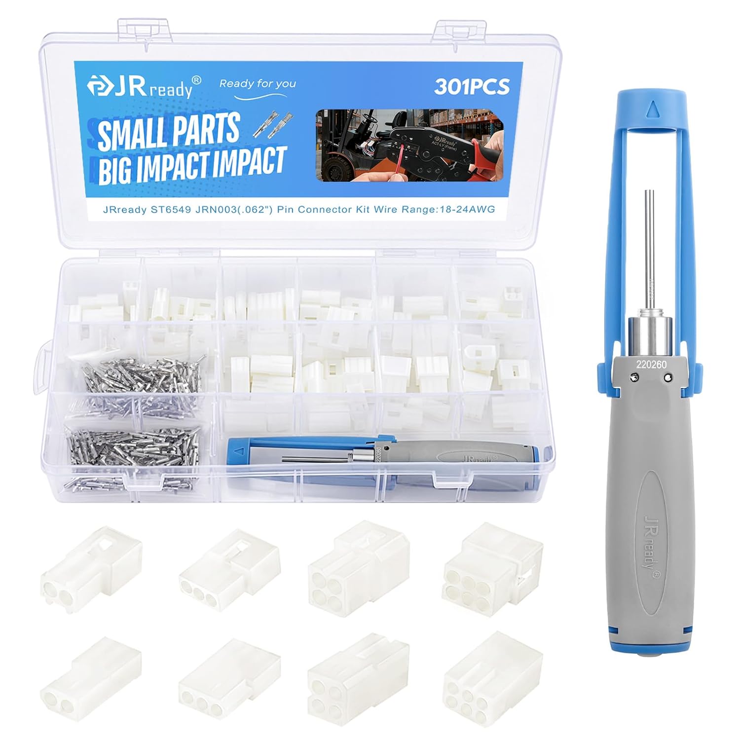 JRready ST6549 .062″ Pins Connector Kit 2 3 4 6 Circuits Connector Power Housings with Pin Removal Tool 18-24AWG Electrical Crimps Terminal 02062103/02061103 Standard Molex 3.68mm Pitch Connectors