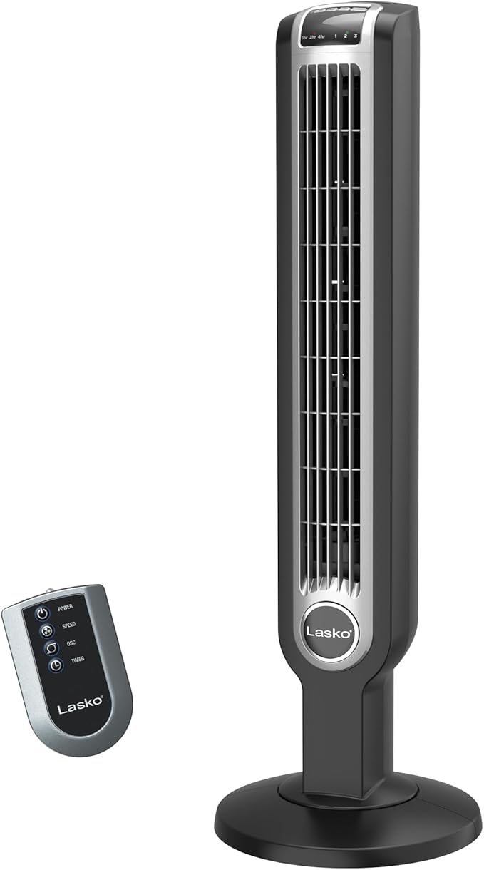 Lasko Oscillating Tower Fan with Remote Control, 3 Quiet Speeds, Timer for Bedroom, Kitchen, Office Use, Black, 36″ 2511