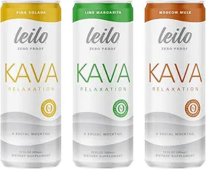 LEILO | Kava Powered Mocktail Drinks | Variety 12-Pack – Sugar-Free & Non-ALC Functional Relaxation Support – Includes 4 of Each: Margarita, Pina Colada, Moscow Mule | 12 fl oz Cans (Pack of 12)