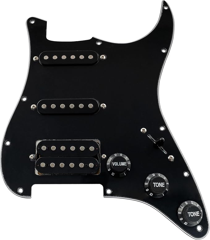 Musiclily SSH Prewired Strat Loaded Pickguard with Single Humbucker Pickups Set for Fender Stratocaster Electric Guitar,3Ply Black