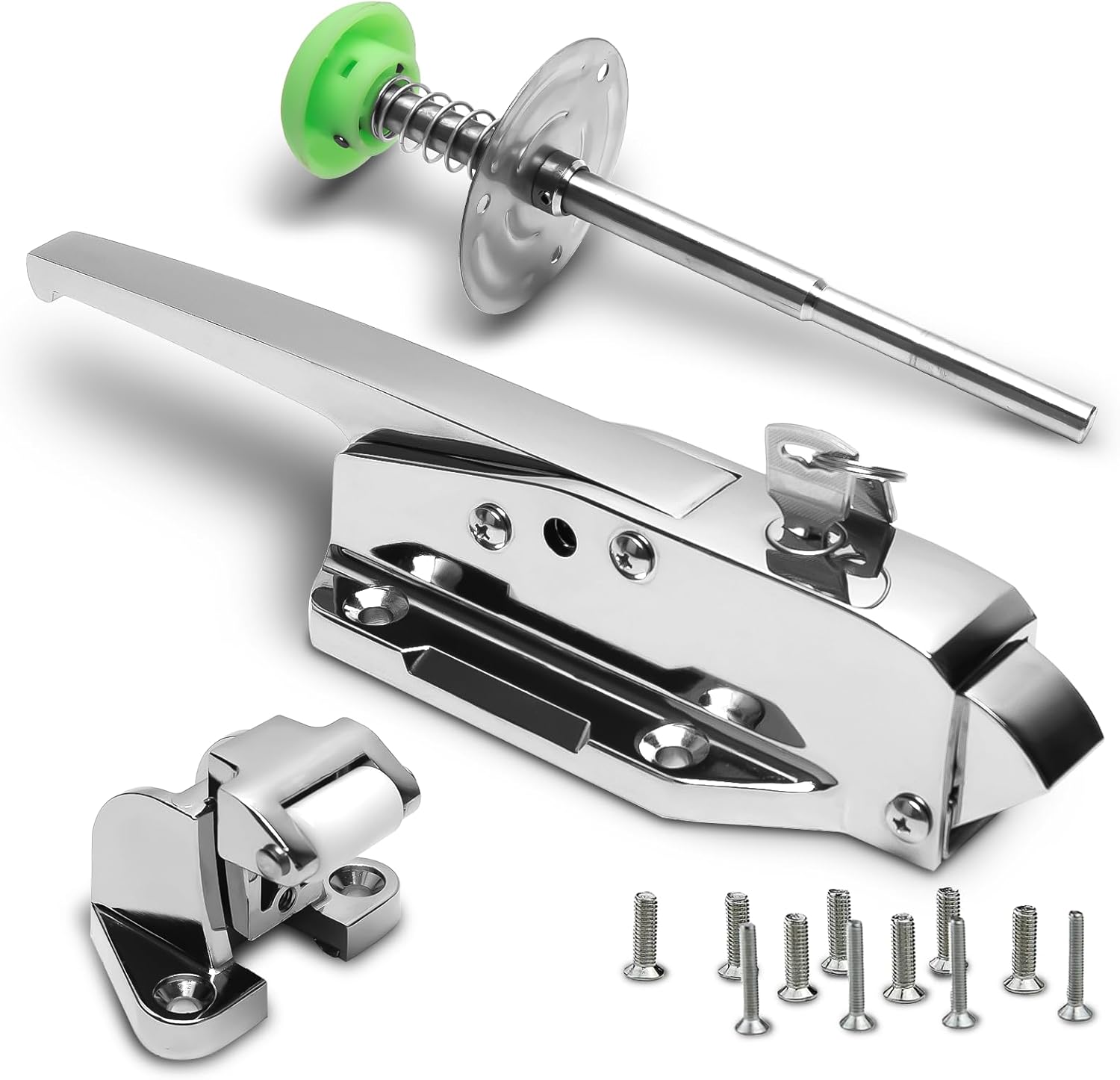 New Upgraded Walk in Cooler Door Handle, Walk in Cooler Door Closer Complete Latch Kit, Freezer Doors Handle, Offset -1/8 in to 1/4 in(Flush) and 5.9″ Solid Metal Interior Release Handle