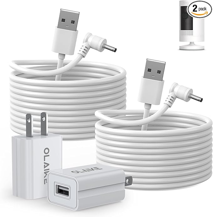 OLAIKE (2 Pack) 5m/16ft Charge Cable for Ring Stick Up Cam Battery/Plug-in & Ring Spotlight Cam Battery, Weatherproof Power Adapter Keep Charge Your Camera (No Camera), White