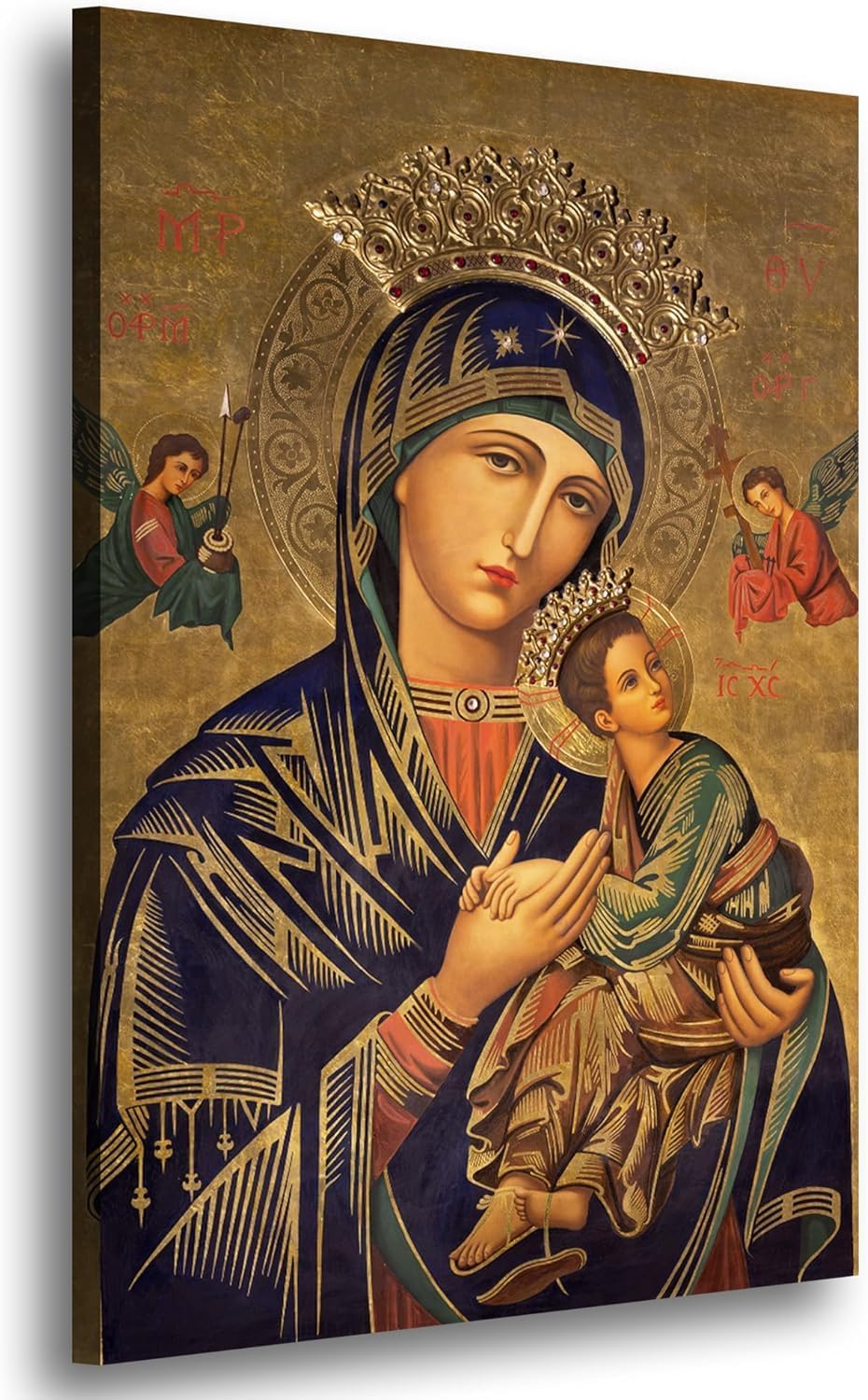 Our Lady of Perpetual Help Wall Decor Russian Orthodox Icon Picture Canvas Art HD Print Wall Art Orthodox Painting for Home Living Room Decoration Poster with Frame Ready to Hang(16”Wx24”H)