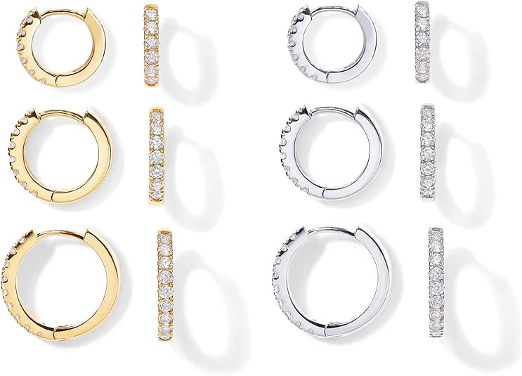 PAVOI 18K Gold Plated 925 Sterling Silver Posts 3 Pairs Hoop Earrings Set for Women | Huggie Earring Pack