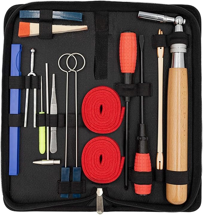Piano Tuning Kit,Professional Piano Tuner Tools Including Tune Hammer Lever Felt, Mutes, Fork,Tuning Wrench,Temperament Strip,Piano Repairing Accessories 16 pieces