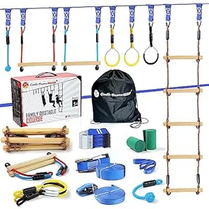 2×56ft Ninja Warrior Obstacle Course for Kids – 600 lbs Weight Capacity, Slackline Obstacle Course with 8 Ninja Accessories – Monkey Bar, Rope Ladder, Gymnastic Ring, Arm Trainer and Monkey Fist