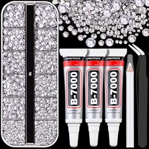 Resin Rhinestones for Crafting with B7000 Jewelry Glue, 1 Box Clear Flatback Crystals with 3Pcs 10ml Glue for Bedazzling Crafts DIY Nail Art Makeup,Non Hotfix Gems for Clothing Shoes