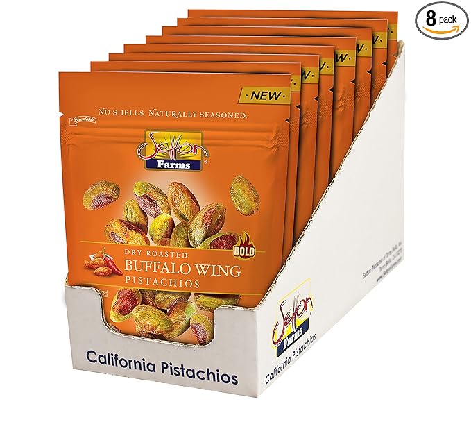 Setton Farms Pistachios, Buffalo Wing Bold Flavor Naturally Seasoned No Shell Pistachio Nuts, Gluten Free, Vegan, Kosher, 5 oz, Pack of 8, 5 Ounce (Pack of 8)