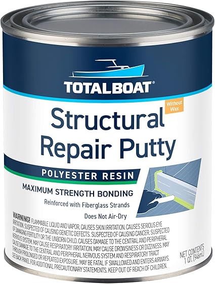 TotalBoat Polyester Structural Repair Putty – Marine Grade Long Strand Fiber Fiberglass Reinforced Filler for Boat and Automotive Repair