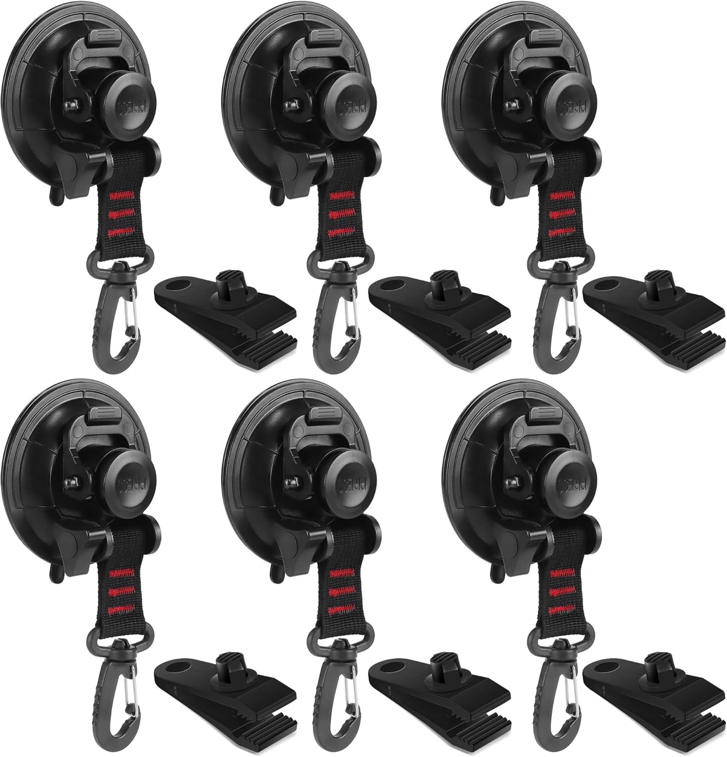 Vashly Heavy Duty Suction Cup 6 Pcs Strong Suction Cups with Hooks and 6 Pcs Tarp Clips Deavy Duty Lock Grip for Car Awning Boat Camping