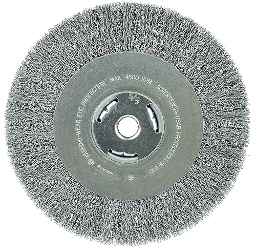 Weiler 36206 Wolverine 8″ Crimped Wire Wheel, .014″ Steel Fill, Wide Face, 5/8″ Arbor Hole, Made in The USA