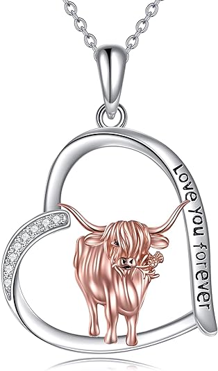 YAFEINI Heart Animal Necklace Sterling Silver Axolotl/Otter/Goat/Cow/Highland Cow/Ferret/Dolphin/Horse/Butterfly/Black Cat/Giraffe Pendant Necklace Heart Animal Jewelry for Women