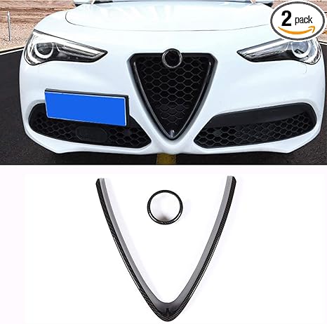 YIWANG Carbon Fiber Style ABS Chrome Front Grill Decoration Frame Trim 2Pcs For Alfa Romeo Stelvio 2017 2018 2019 2020 Auto Accessories (NOT Applicable for Giulia) (Carbon Fiber)